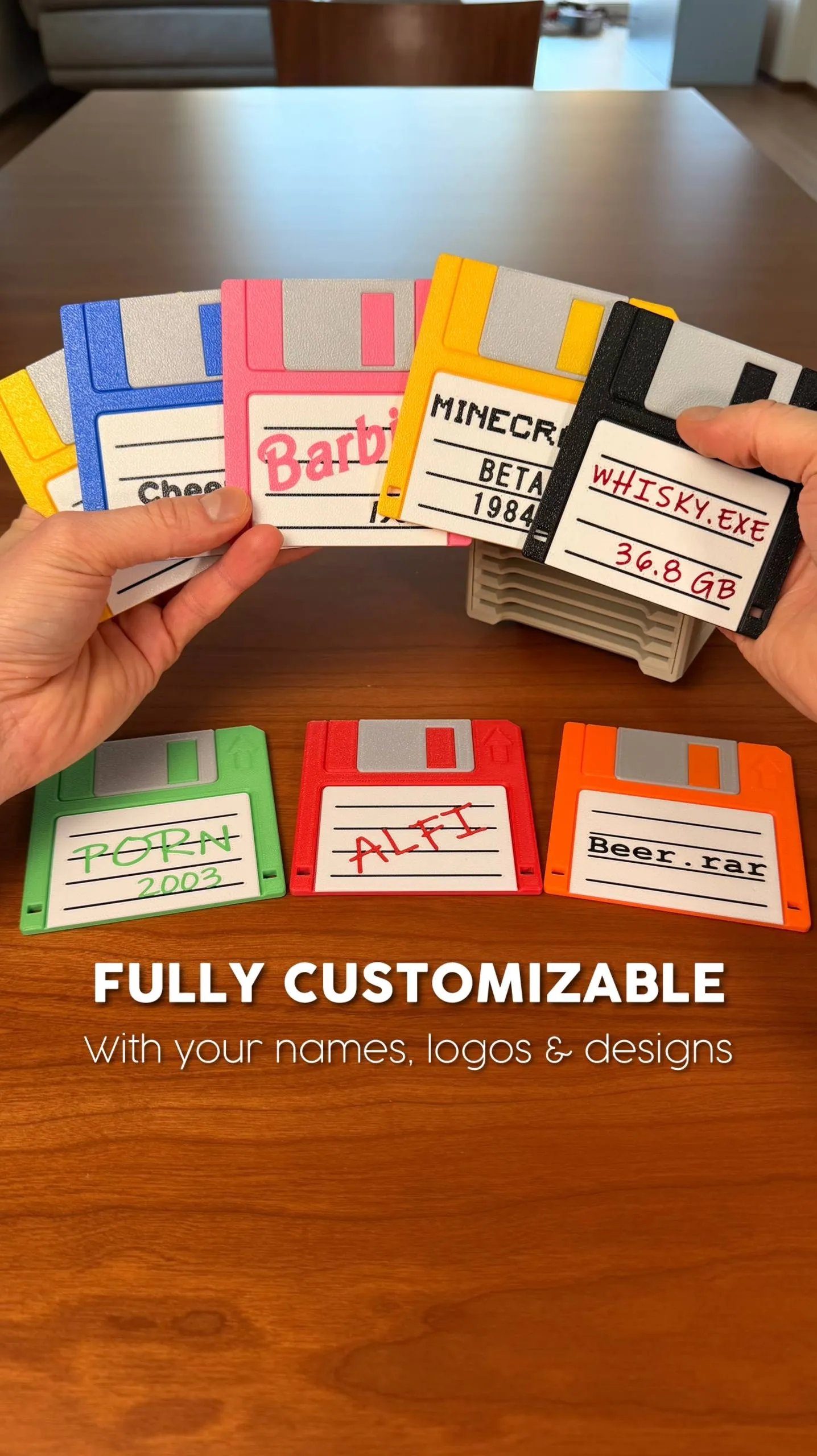 Each floppy‑disk coaster is a blank canvas. Customize with colors, labels, names, or logos in your slicer. Whether you want to “save” your coffee or showcase your brand, the choice is yours. 💾☕